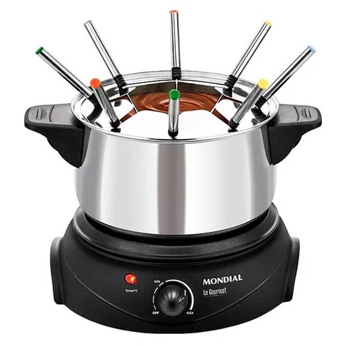 La fondue tiene una potencia máxima de 1500 W, más que suficiente para fundir con mucha rapidez todo tipo de alimentos, y permite ajustar la temperatura adecuada a cada receta. Recipiente de acero inoxidable con revestimiento antiadherente con capacidad para 1,5 litros, e incluye 8 tenedores de diferentes colores para no mezclarlos a la hora de utilizar la fondue y una bandeja muy práctica para depositar los alimentos.
