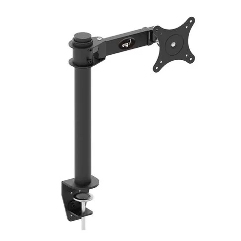 El soporte de mesa articulado ELG permite el ajuste de la altura del brazo, así como el ajuste de la inclinación lateral y vertical, para un mejor posicionamiento, comodidad y ergonomía.