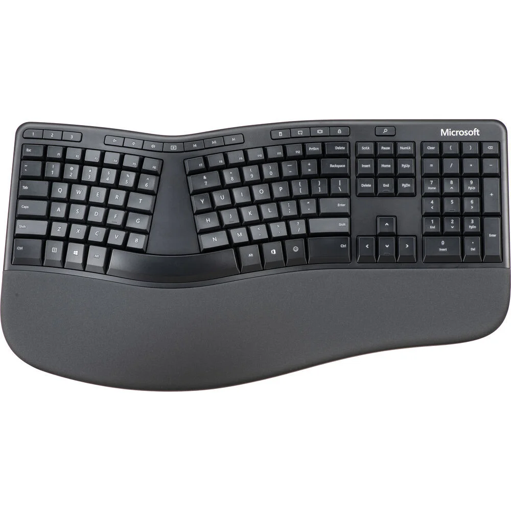 Trabaje durante períodos prolongados con mayor comodidad, con menos riesgo de fatiga y lesiones con el teclado ergonómico para empresas de Microsoft. Construido con un reposamanos mejorado que está cubierto con tela, este teclado presenta un diseño delgado y refinado con un diseño dividido y teclas de acceso directo dedicadas que se pueden usar para Office 365, emojis, búsqueda, fácil acceso a controles multimedia y más.